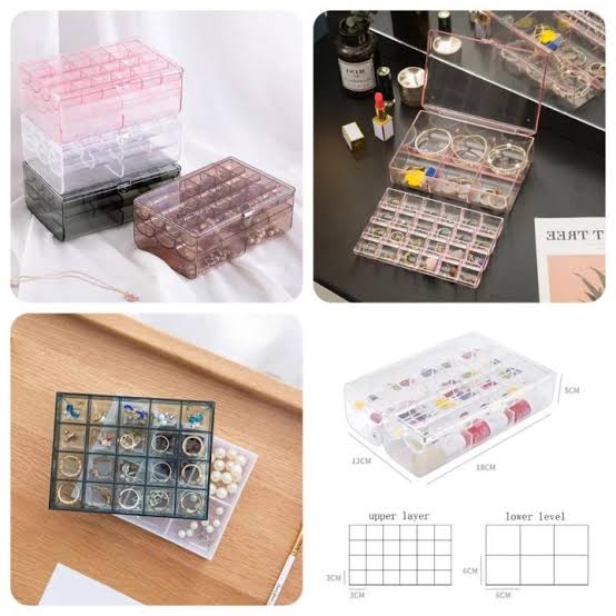 Store and display your jewelry in style with this 3-layer acrylic organizer. Featuring multiple drawers and compartments, it keeps rings, earrings, necklaces, and accessories neatly arranged while protecting them from dust. Its clear design adds elegance and easy visibility to your collection.